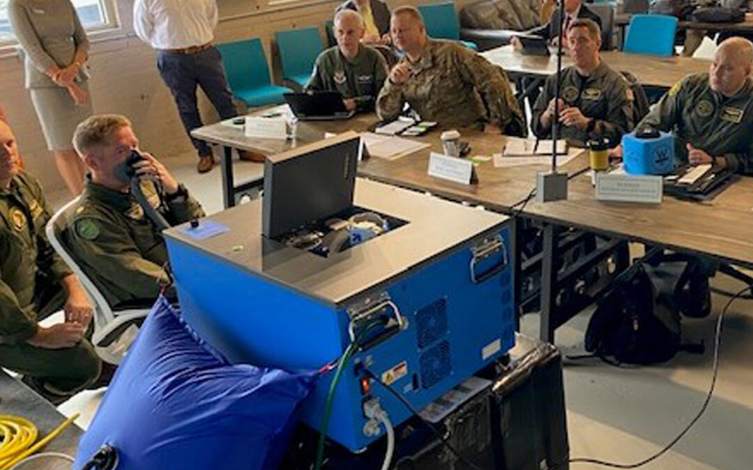 Air Force and Navy officials watch a demonstration during the inaugural Physiological Episodes Mitigation Technology Summit and Industry Day in Dayton, Ohio, Dec. 17-18. (U.S. Air Force photo by Lt. Col. Christianne “BOS” Opresko)