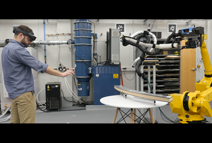 The new system, used to apply thermal coatings to refurbish worn aerospace parts, requires a human user to look through an augmented reality-enabled Microsoft Hololens and indicate via intuitive hand gestures where a coating should be applied to a workpiece. The system will deliver significant cost savings to the Air Force, improve weapon system readiness, decrease maintenance downtime and improve material application accuracy.