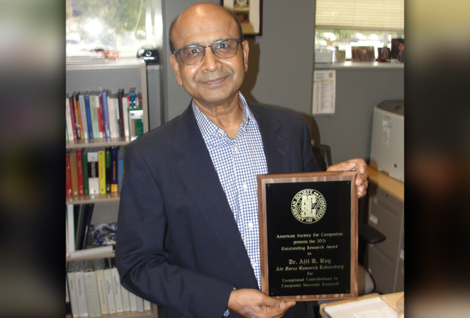 WRIGHT-PATTERSON AIR FORCE BASE, Ohio (AFRL) – The American Society for Composites recently acknowledged Dr. Ajit Roy, of the Air Force Research Laboratory’s Materials and Manufacturing Directorate, with its Outstanding Research Award for Exceptional Contributions to Composite Research.