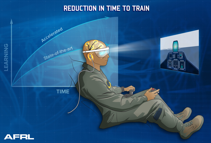 The Air Force Research Laboratory-led Individualized Neural Learning System project aims to give Airmen the ability to rapidly acquire knowledge and skills through neurotechnology. This project was recently awarded funding as part of the Seedlings for Disruptive Capabilities Program, which seeks to “seed” new ideas of particular interest to the Air Force. (U.S. Air Force illustration/Richard Eldridge)