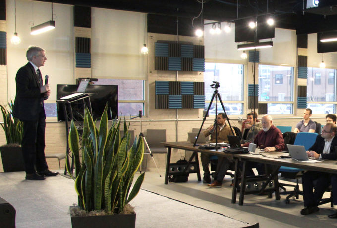 The Air Force Research Laboratory Sensors Directorate and the Wright Brothers Institute hosted the Gallium Nitride (GaN) Radio Frequency (RF) Power Amplifier Design Challenge kick-off session, Jan. 28, in Dayton, Ohio. The goal of this challenge is to lower barriers to entry to advanced GaN technology, engage with non-traditional GaN power amplifier designers, and foster domestic design and fabrication capabilities. (U.S. Air Force photo/Ted Pitts)