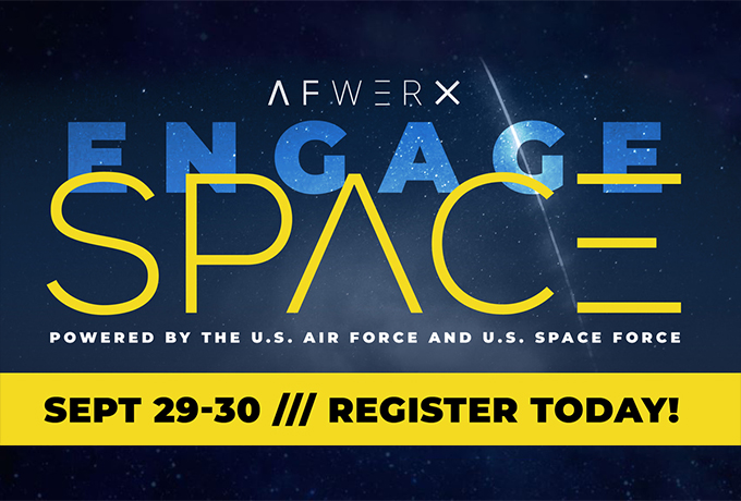 AFWERX, the U.S. Air Force’s innovation catalyst, announced Sept. 16 that registration is now live for EngageSpace virtual event. Join AFWERX, the US Air Force, the U.S. Space Force and the Space Frontier Foundation for this two-day virtual event on September 29-30. (AFWERX courtesy graphic)