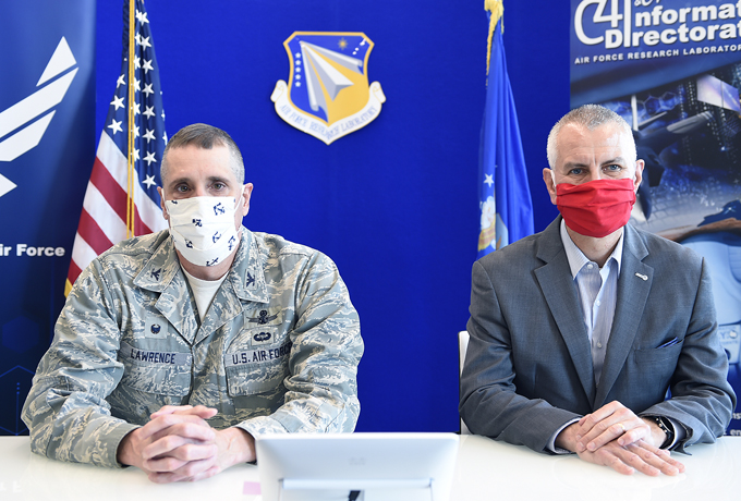 Col. Timothy Lawrence, director of AFRL’s Information Directorate, and Dr. Michael Hayduk, deputy director, participate in a first-of-its-kind virtual quantum collider pitch event June 15-16, from Rome, N.Y. The Air Force Research Laboratory awarded $5.25 million to 23 small businesses during the event. (Courtesy photo)