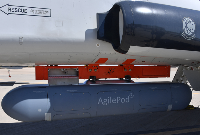 The Air Force Strategic Development Planning and Experimentation office took steps forward in April in making the Air Force’s new Precision, Navigation and Timing concept of operations a reality as it demonstrated fused PNT technologies within an Agilepod during six successful Phase I sorties on an airborne testbed in Centennial, Colorado, and successfully fit-tested the configuration on a T-38 at Holloman Air Force Base, New Mexico, ahead of planned Phase II flight tests in August. (Courtesy photo)