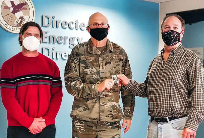 To honor their important contributions, team members were presented with Air Force Materiel Command (AFMC) challenge coins, by Gen. Arnold W. Bunch Jr., AFMC Commander, during his visit to Kirtland Air Force Base recently.