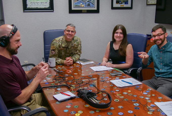 Maj. Gen. William Cooley speaks with the Air Force Research Laboratory podcast team during his appearance on the Lab Life podcast. Lab Life features behind the scenes interviews with science and technology experts across the lab who are developing next generation science and technology for the Air Force. (Air Force courtesy photo/released)