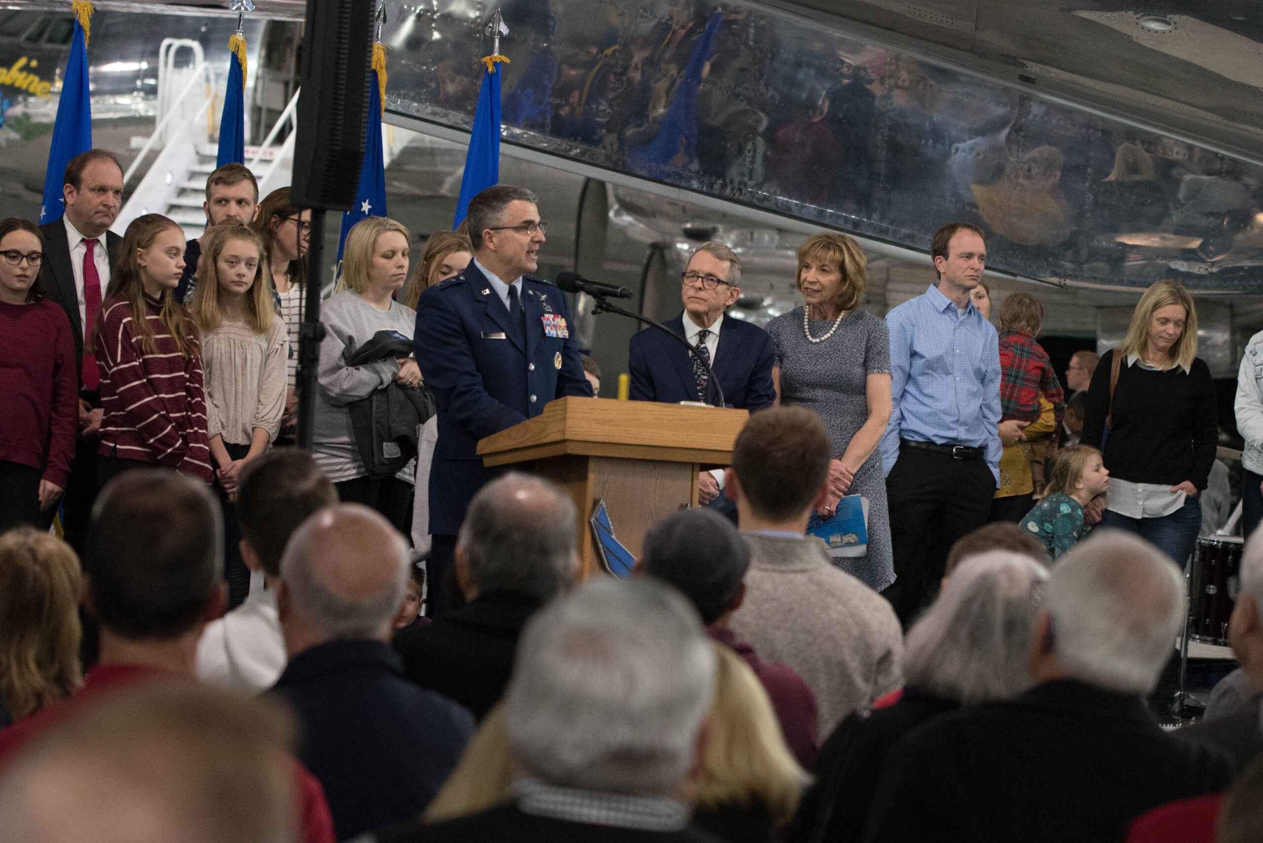 WRIGHT-PATTERSON AIR FORCE BASE, Ohio — Despite several inches of snow falling and hampering road conditions, more than 2,400 people joined Ohio Governor Mike DeWine and his wife Fran and Air Force Research Laboratory Commander, Maj. Gen. William Cooley, at the National Museum of the U.S. Air Force at Wright-Patterson Air Force Base during a Science, Discovery and Family Fun event Jan. 13.