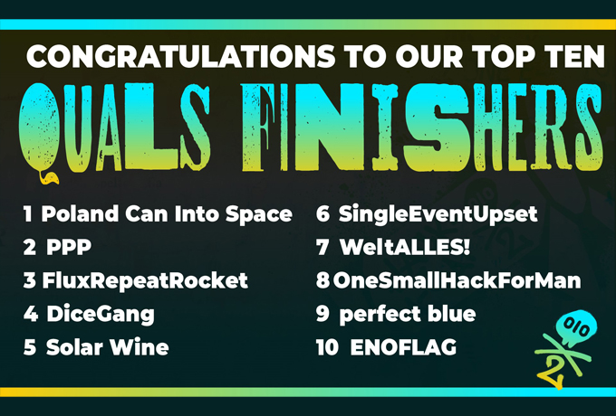 The Top Ten finishers in the qualification round of the Hack-A-Sat 2 competition. (Courtesy graphic)